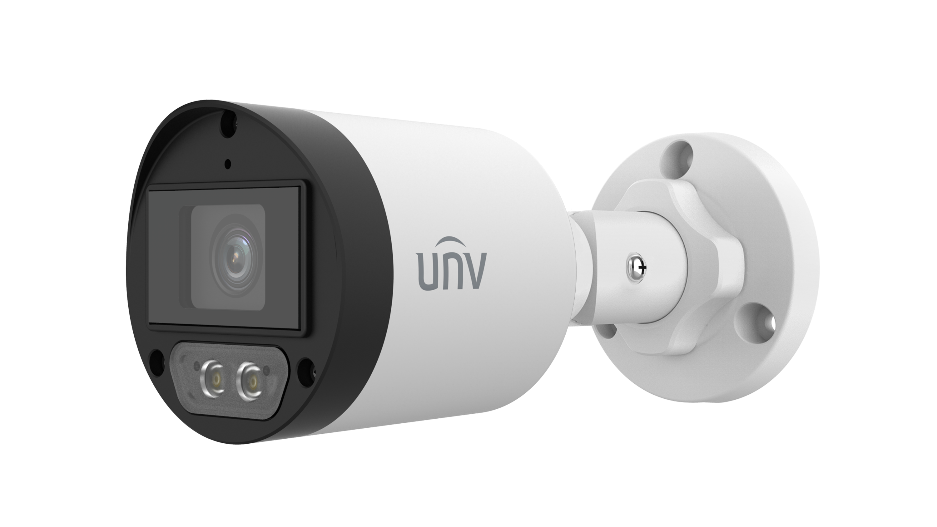 The UAC-B122-AF28(40)M-W is a 2MP ColorHunter fixed mini bullet analog camera from Uniview that delivers full-color footage around the clock. It uses a 1/2.9″ CMOS sensor with 1080p resolution and supports TVI, AHD, CVI, and CVBS formats. The unit offers lens options of 2.8 mm (~101.5° view) or 4.0 mm (~83.8° view) and includes white light LEDs for color imaging even in darkness, effective up to 40 meters. It supports 180° horizontal and vertical flips, includes an OSD menu, features a built-in microphone, is sealed in an IP67-rated housing, and draws roughly 3.2 W on 12 V DC.